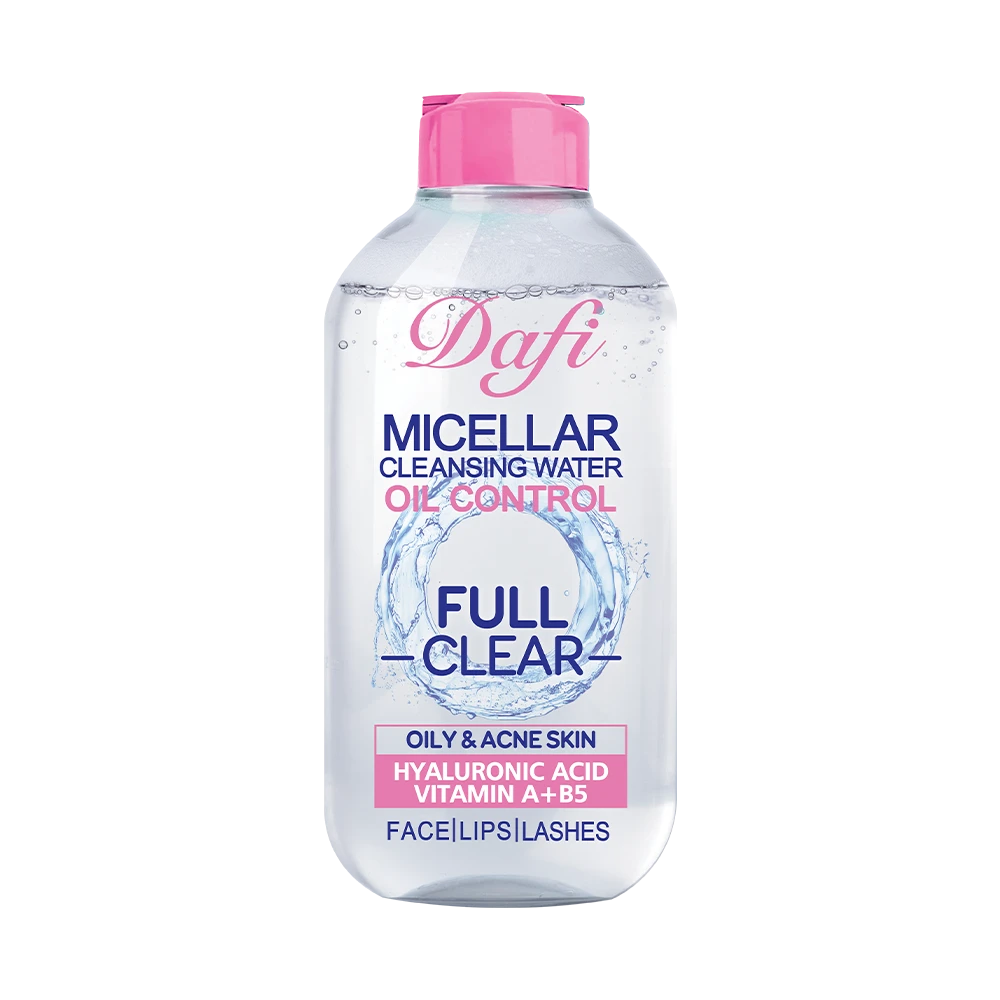 میسلار واتر پوست چرب و آکنه‌ای دافی با ترکیباتی مثل روغن درخت چای، هیالورونیک اسید و ویتامین‌های B5 و E، آرایش و آلودگی را بدون نیاز به شست‌وشو پاک کرده و چربی پوست را کنترل می‌کند. این محصول ضد التهاب، آبرسان و مناسب پوست‌های مستعد جوش است